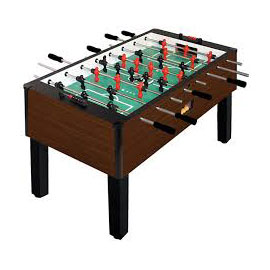 Soccer game played on a raised table.